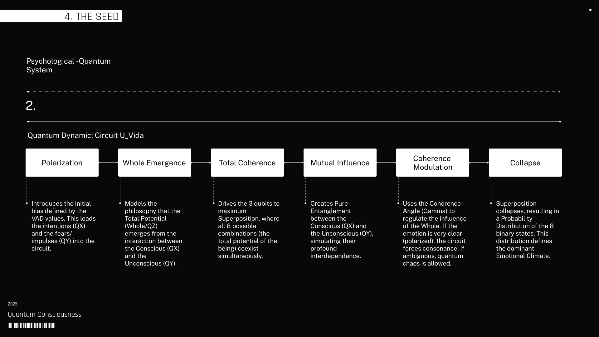 Through quantum simulations, the elusive nature of the psyche is revealed, constructing a holistic system that acts as a map of emotional states coexisting in full superposition, manifesting Consciousness as the composite Whole of these simultaneous resonances.
