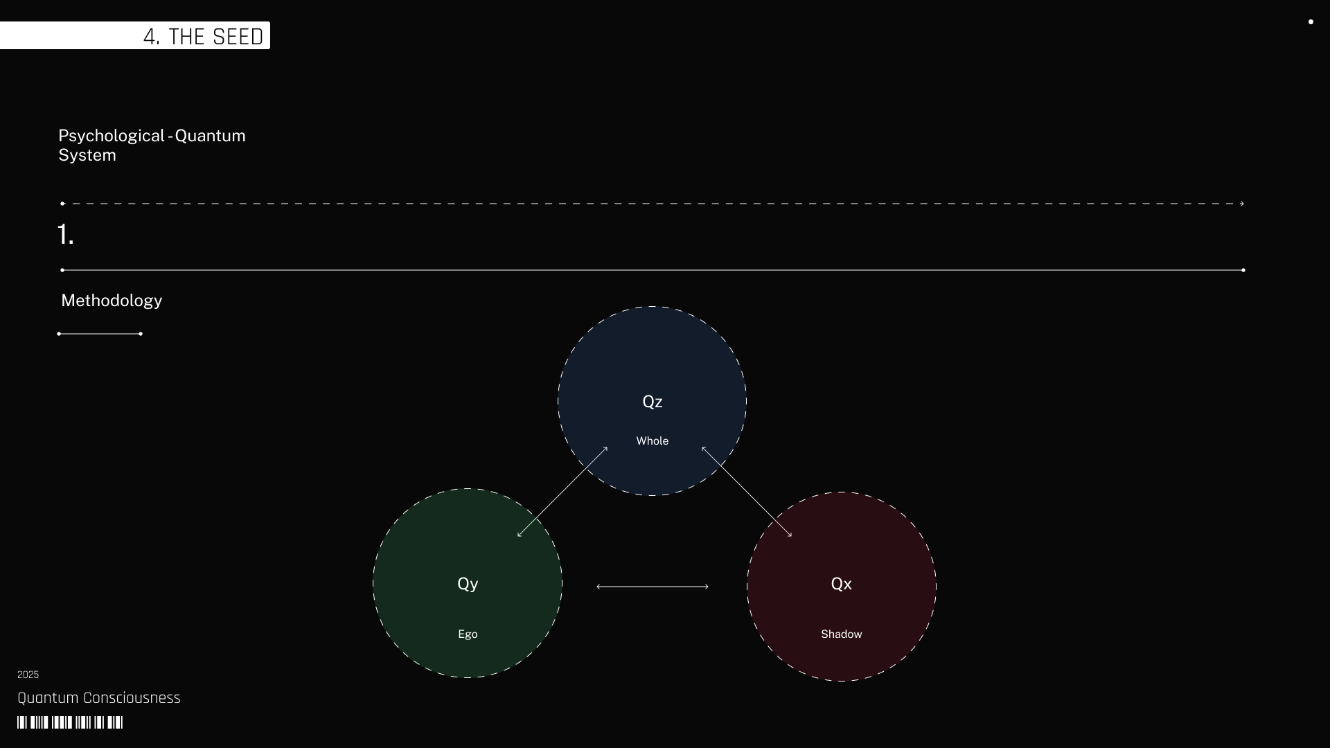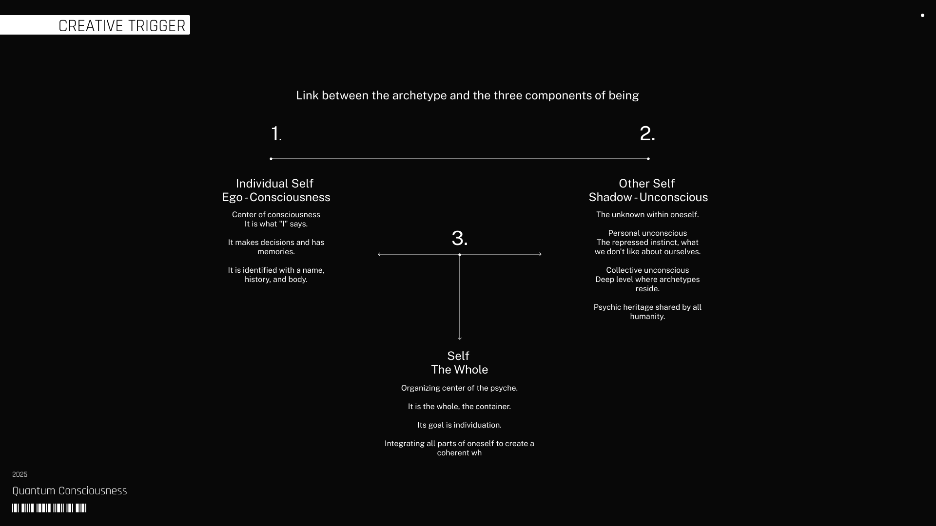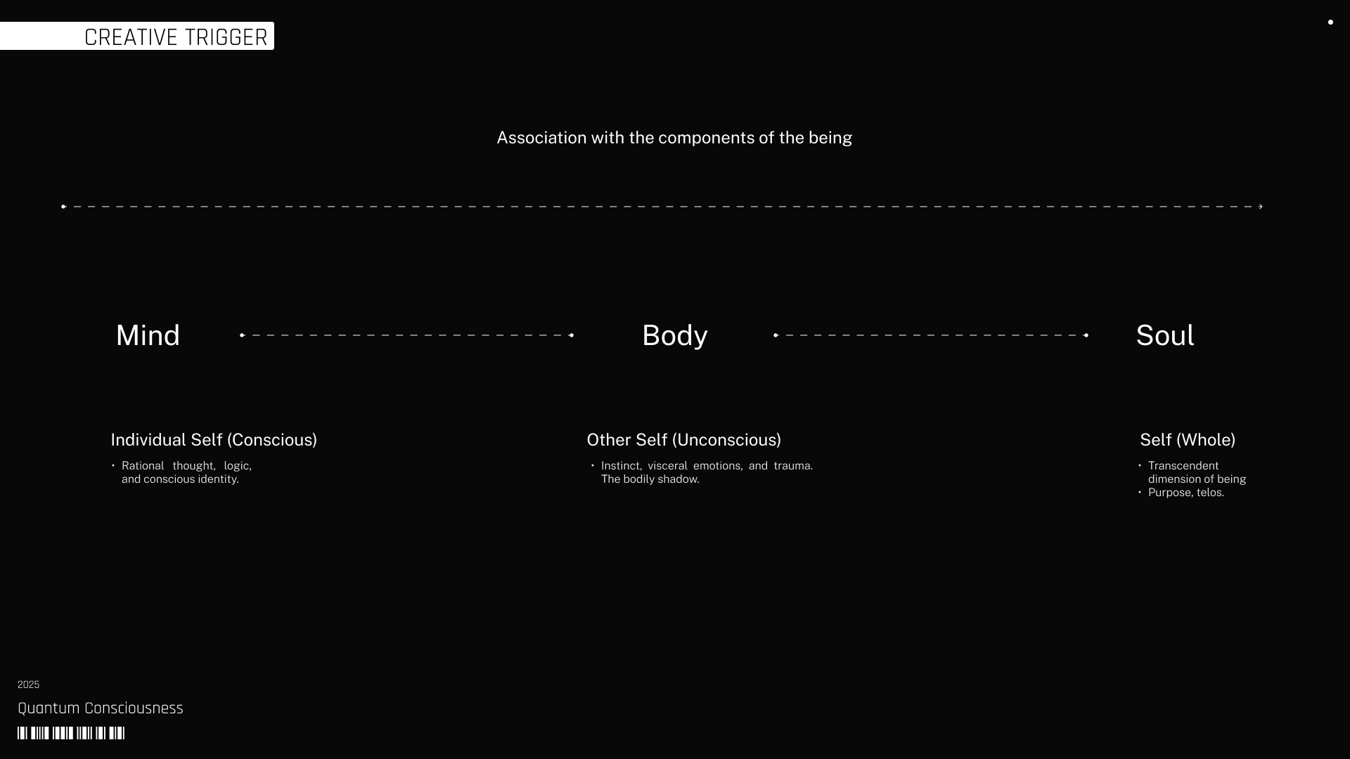 A profound resonance inhabits existence, an echo that defies inertia and pushes the being toward its manifestation: Consciousness. This Consciousness reveals itself as the vectorial compound of a tripartite relationship that gives rise to the nature of the human mind. This Whole emerges from the constant reconfiguration of psychic reality, the dynamic interaction between two poles: the Conscious Self and the Unconscious Shadow. The being, initially a pure and unresolved potential, unfolds in a dialogue between the parts that gives rise to a series of stages resonating with the authentic primordial essence, analyzing the archetypal components that shape individuation.