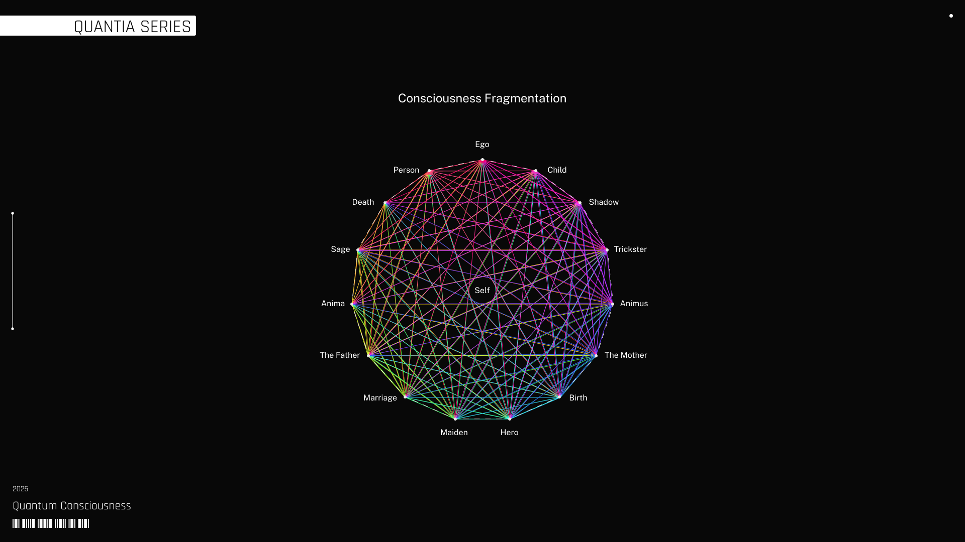 Inspired by the philosophical maxim that Totality is an emergent property of interconnectedness, Quantia merges Jungian metaphysics with the philosophy of autopoiesis and the logic of recursivity, giving rise to the Consciousness Equation based on Superposition and Entanglement. Here, the Whole—the Organizing Center of the Psyche—emerges as the result of the dynamic interaction between the Conscious Self and the Unconscious Shadow, a relentless process of individuation driven by the "Process of Living" (Uvida). The application of this quantum operator leads psychic states to maximum superposition, where all emotional possibilities coexist simultaneously before collapse. This formula acts as the articulation of a profound philosophy: Consciousness is born from the dialectic between inner order and chaos. This principle transforms into structure, movement, and form, capturing the constant dance between internal impulse and its external manifestation, the pulse of being and the logic of becoming, where aspiration meets creation through the ineluctable mechanics of entanglement.